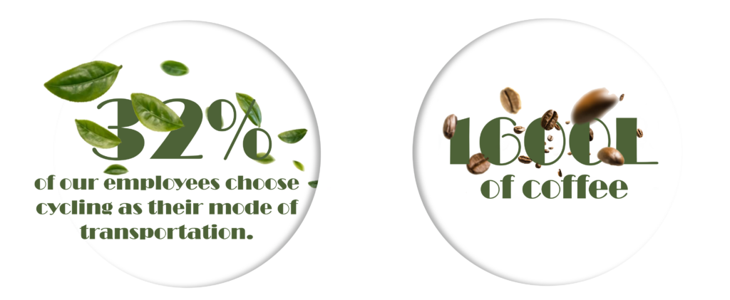Each week, our team rides 455 km by bike to get to work that’s 23,660 km per year… the equivalent of four round trips between Paris and Tokyo.